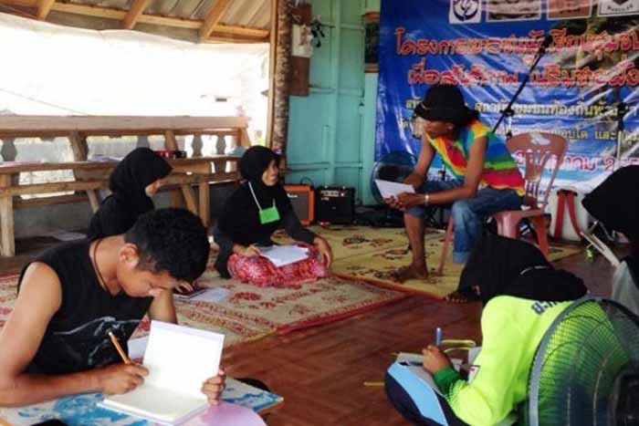 มุกตา นาลี ผู้ประสานงานโครงการฯ บอกกล่าวถึงความเป็นไปของน้องๆ กับโครงการว่าเด็กที่มาร่วมค่ายมีทั้งเด็กในระบบและนอกระบบการศึกษาที่มีความแตกต่างกัน อยากให้พวกเขากล้าพูด กล้าแสดงออก มีการแลกเปลี่ยน ลงพื้นที่ชุมชนหาข้อมูลมาเขียน ให้คิดเองทำเองในรูปแบบที่ถนัด ทางทีมเป็นผู้จุดประกายมากกว่า เช่นประเด็น “ไปค่ายริมทะเลจะเขียนอะไรได้บ้าง”เพื่อทำให้เขาอยากเขียนงานมากขึ้น และนำประโยชน์จากโครงการไปใช้ได้