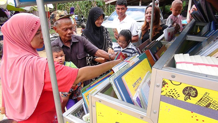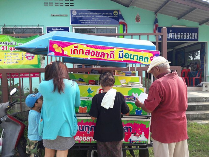 สำหรับที่เห็นในภาพเป็นการนำรถมินิโมบายห้องสมุดเคลื่อนที่ออกให้บริการประชาชนตามหมู่บ้านต่างๆ ในพื้นที่หมู่ 2 บ้านม่วงค่าย ต.ฉลุง อ.หาดใหญ่ ทั้งหน้าร้านน้ำชา ตลาดนัด และโรงเรียนสอนศาสนาอิสลาม โดยมี อาจารย์นภัทร สุขราษฎร์กนก หรือครูอ๋อ หัวหน้าศูนย์การศึกษานอกโรงเรียนตำบลฉลุง เป็นผู้ดูแล ปรากฏว่า ได้รับความสนใจจากชาวบ้านทุกเพศทุกวัย โดยเฉพาะเด็กๆ ที่มาห้อมล้อมรถห้องสมุดเคลื่อนที่คันนี้ และเลือกอ่านหนังสือที่ชื่นชอบซึ่งมีหลากหลายประเภทให้เลือก ทั้งหนังสืออ่านเล่นทั่วๆ ไป การ์ตูน และหนังสือที่เกี่ยวกับอาชีพ และจะหมุนเวียนออกให้บริการตามหมู่บ้านต่างๆ ทั้ง 13 ตำบลของ อ.หาดใหญ่ ตำบลละ 1 สัปดาห์