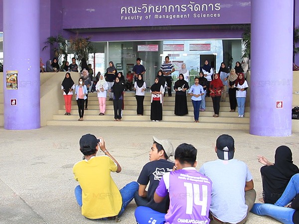 นักศึกษาภาควิชานิเทศศาสตร์ ชั้นปีที่ 1-4 ของมหาวิทยาลัยราชภัฏยะลา จำนวนกว่า 50 คน ต่างตั้งใจฝึกซ้อมการแสดงละครเวที เรื่อง “สันติภาพ” ซึ่งเป็นการเตรียมความพร้อมก่อนจะมีการแสดงจริง ในงาน “มรย.วิชาการ” ประจำปี 2560 คลังปัญญาแห่งชายแดนใต้ สู่ Thailand 4.0 ระหว่างวันที่ 15-17 สิงหาคม 2560 ที่มหาวิทยาลัยราชภัฏยะลา