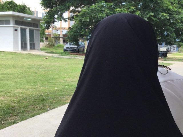 “ก่อนที่จะคลุมมาเรียนก็กลัวมีคนมาล้อคนมองพอวันที่ 16 พ.ค. ที่คลุมจริงมาเรียนผู้อำนวยการมาต้อนรับก็โล่งใจ เพื่อนๆ ในห้องก็ถามว่าใส่ทำไมก็ไม่ได้ตอบเขา ครูประจำชั้นที่เป็นไทยพุทธก็ไม่ได้ถามหรือว่าอะไร แต่มีครูบางคนที่มองแปลกๆ บ้างตอนนั้นหนูคลุมอยู่คนเดียว ในห้องตอนนี้มีเพื่อนในห้องคลุมเพิ่มอีกสองคนรวมเป็น 3 คน”