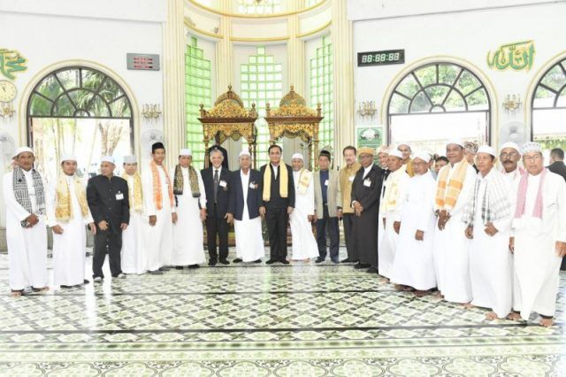 เมื่อนายกรัฐมนตรีเดินทางมาถึงมัสยิดกลาลุลอิสลาม ผู้นำศาสนาขอพรดูอาร์ให้แก่นายกรัฐมนตรี เพื่อให้สุขภาพแข็งแรงและมีกำลังในการทำงานพัฒนาประเทศยิ่งขึ้นไป จากนั้น นายกรัฐมนตรีกล่าวพบปะผู้นำศาสนา นักเรียนและประชาชนที่มาให้การต้อนรับตอนหนึ่งว่า ดีใจที่ได้เห็นรอยยิ้มของทุกคน แสดงให้เห็นว่าอยู่ในสังคมที่ดี สังคมพหุวัฒนธรรม ไม่ว่าเชื้อชาติไหน ศาสนาใดต้องอยู่รวมกันอย่างสงบสุขเพราะทุกคนอยู่บนแผ่นดินไทย ล้วนแล้วแต่เป็นคนไทยด้วยกันทั้งหมด จะต้องไม่มีการแบ่งแยก ขอให้ภูมิใจในความเป็นไทย ทั้งนี้ ไม่ว่าศาสนาใดต่างก็สอนให้คนเป็นคนดี อยู่รวมกันอย่างสันติ ในส่วนการแก้ไขปัญหาภาคใต้ รัฐบาลไม่มีนโยบายใช้ความรุนแรงในการแก้ไขปัญหา แต่ใช้หลักความเข้าใจ ความร่วมมือในการแก้ไขปัญหาภายใต้หลักของกฎหมาย